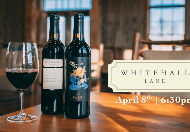 Please join us Wednesday, April 8th for an evening with the team at Whitehall Lane Winery from Napa Valley!